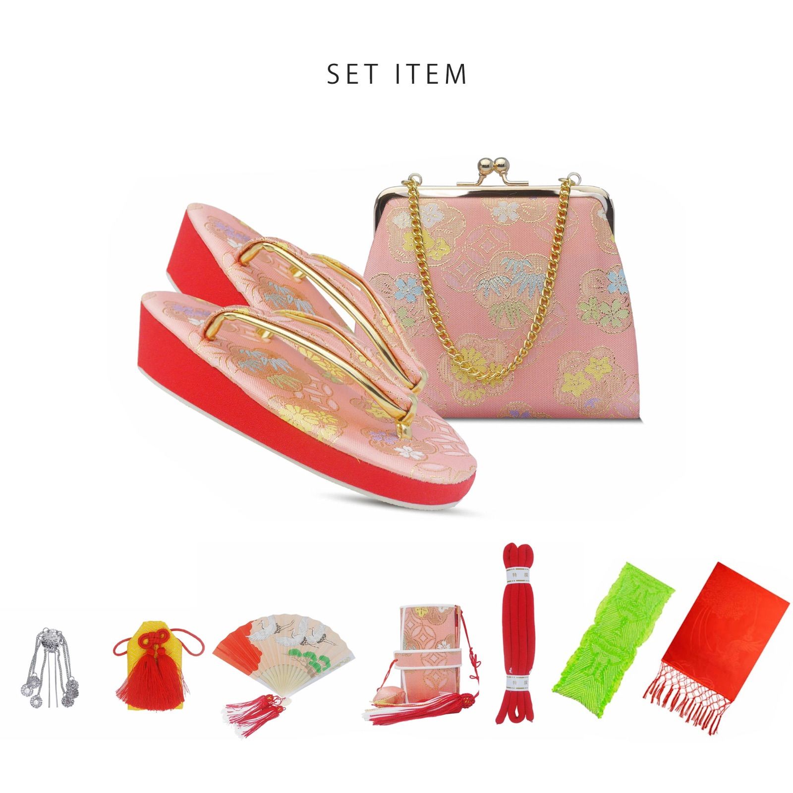 お守り・扇子・びら簪・足袋(19-20cm)・腰紐2本・帯揚げ・志古貴