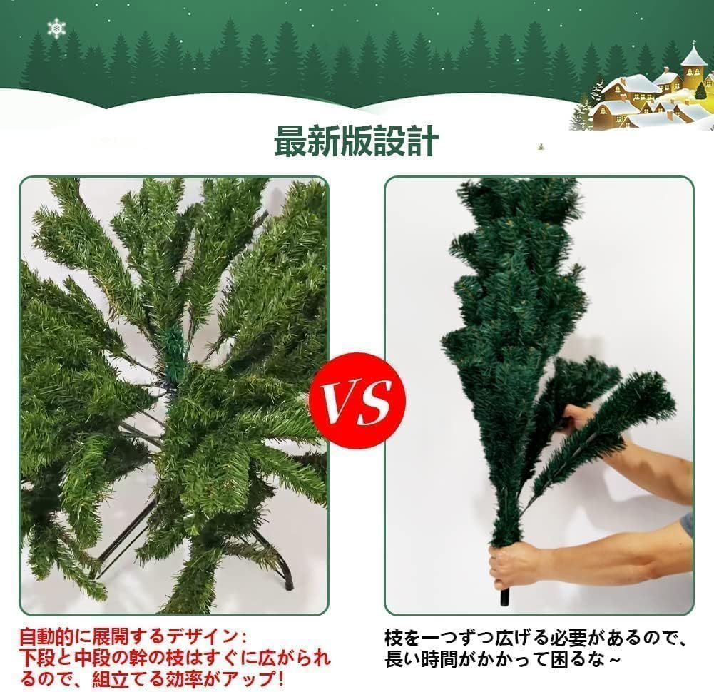 ?【大幅増量1300枝でリアル感!】ツリーには約1300枝あり、本物のように再現したたっぷりの枝と葉は濃密度、豪華で迫力があります。ご自宅のクリスマスデコレーションとしてはもちろん、お店の飾りとしても存在感抜群!幹部分は緑の葉がつき、枝部分は自然なブラウンデザインで、見た目は本物みたいなツリー、リアル感が十分!