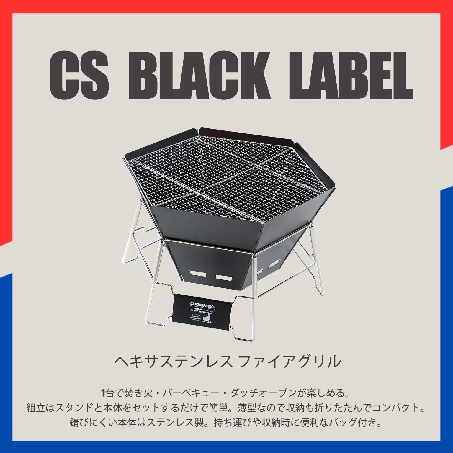 キャプテンスタッグ(CAPTAIN STAG) バーベキューコンロ 焚火台 ダッチオーブン 1台3役 ヘキサステンレス ファイアグリル バッグ付 CSブラックラベル UG-50