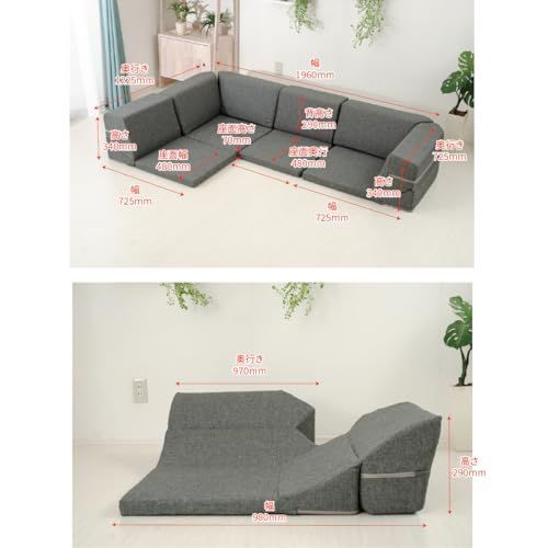 【サイズ】 1人掛け:(約)幅48×奥行72.5~98×高さ29~34cm、座面奥行48cm コーナー:(約)幅72.5~98×奥行72.5~98×高さ29~34cm、座面奥行48cm ※座面高は一番厚さがある部分で7cmです。