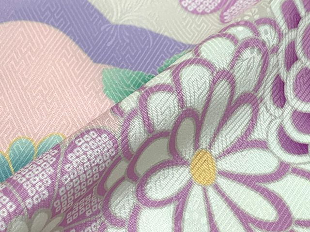 七五三 7歳 女の子用 四つ身の着物と結び帯 他 コーディネート フルセット スキンピンクx紫 雲に菊 OYM A 807 f 22607 GM