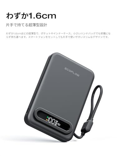 迅速に発送 Qi 2 25 Wワイヤレス充電対応 EcoFlow RAPID Mag Power Bank USB Cケーブル内蔵 10 000 mAh Black 62 dfb 644