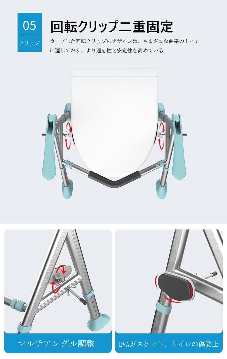 【組み立て簡単】トイレフレームは工具不要で簡単に取り付けられます。使用者のニーズに合わせて簡単に調整できます。