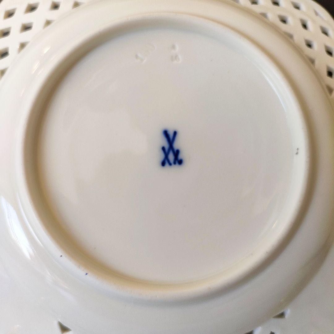 マイセン 1級品 フワラーブーケ 昆虫 金彩 透かしプレート 美品 ローズ小花③