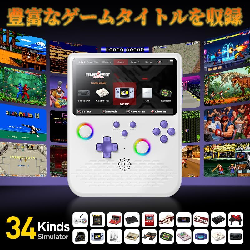 H 5 ポータブルゲーム機 5インチIPS大画面 Linux TitanOS搭載 64 G 128 G対応 ダブルジョイスティック RGBライト付き 4000 mAhバッテリー 34種類のシミュレーター対応 OTG有線 無線コントロー 4 f 7379 e 8