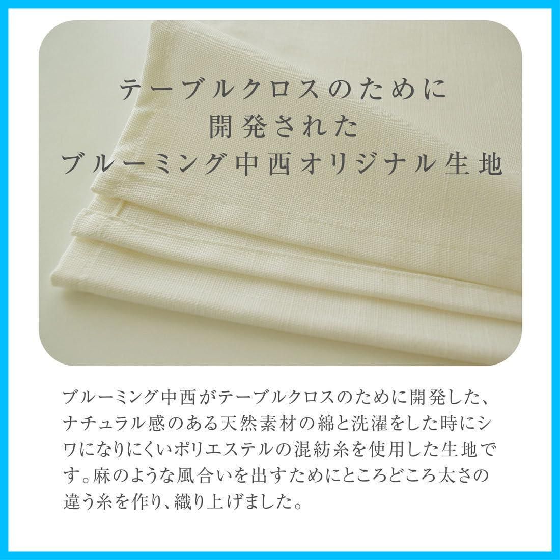 【高品質テーブルクロス】テーブルクロスのための生地を糸から織っているオリジナルの日本製テーブルクロスです。ナチュラル感のある天然素材の綿と洗濯をした時にシワになりにくいポリエステルの混紡糸を使用しております。麻のような風合いを出すためにところどころ太さの違う糸を作って織り上げました。