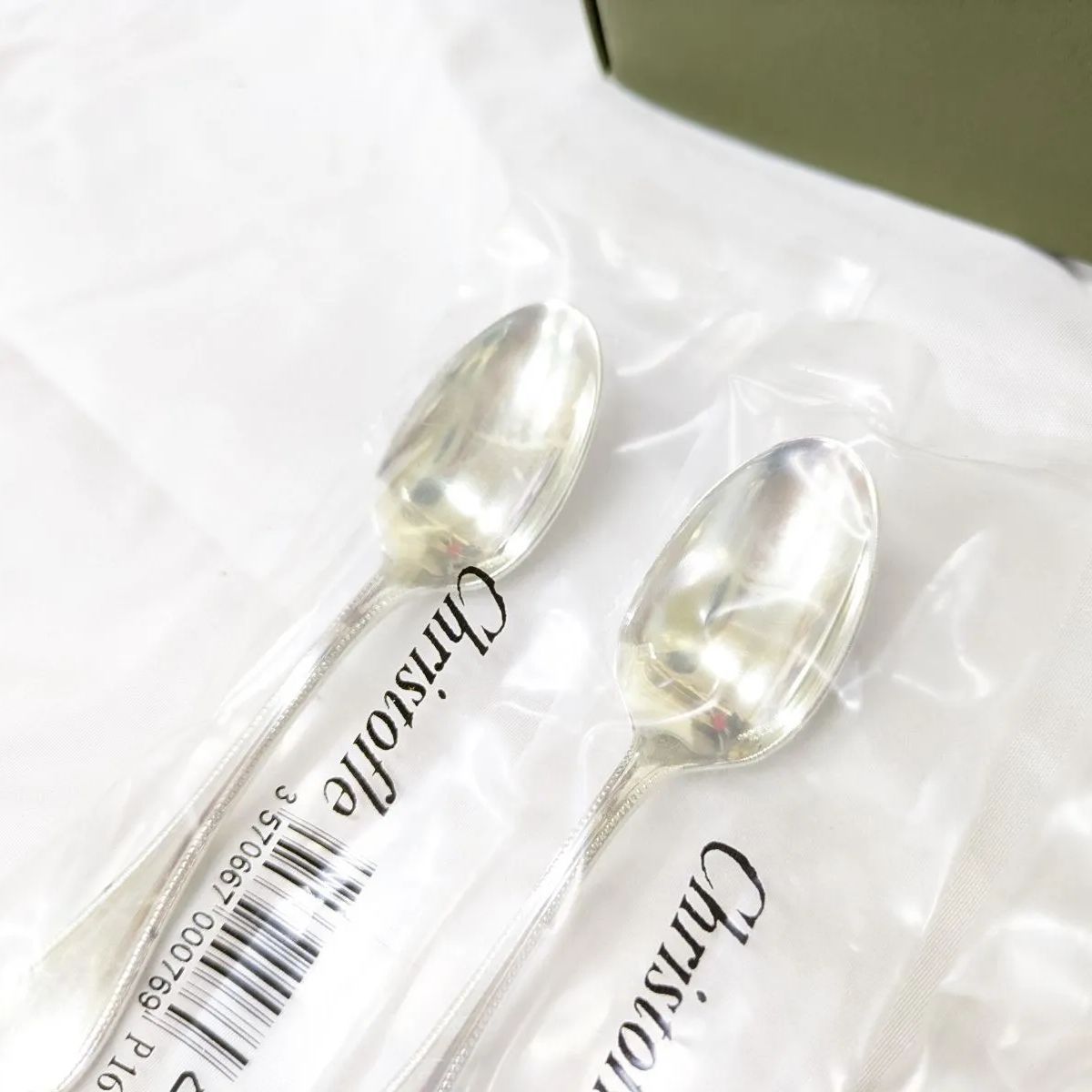 未開封 CHRISTOFLE/クリストフル デミタススプーン2本 フォーク2本セット シルバー パール
