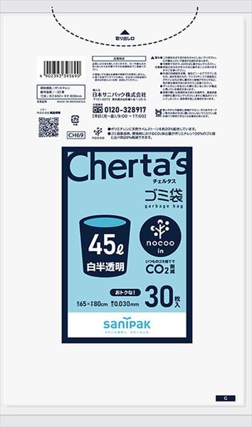 ■【商品内訳】:CH69チェルタス ゴミ袋45L 白半透明 30枚×20点セット