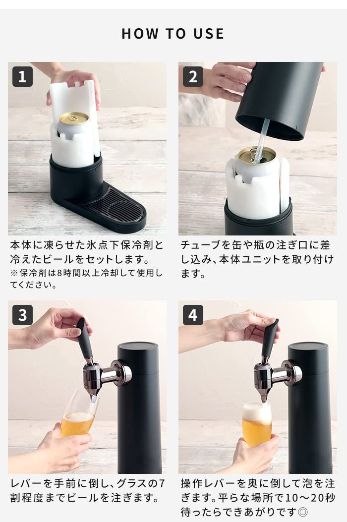 ・ビアホールのビールサーバーと同じ操作感 ・キンキンを味わえる!氷点下保冷剤を付属 ・各社の缶ビール、瓶ビールに対応した全体加圧方式を採用