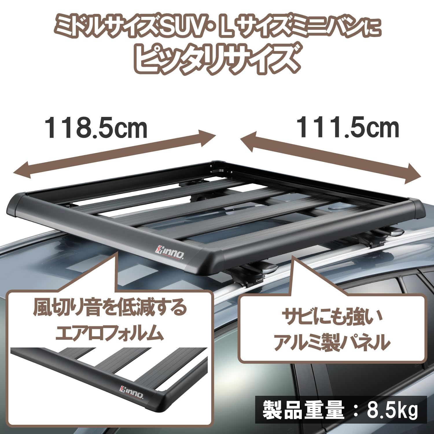 ミニバン、SUVにピッタリのサイズ。スクエアベース・エアロベース、どちらにも取付できます。 (ベースキャリア別売)