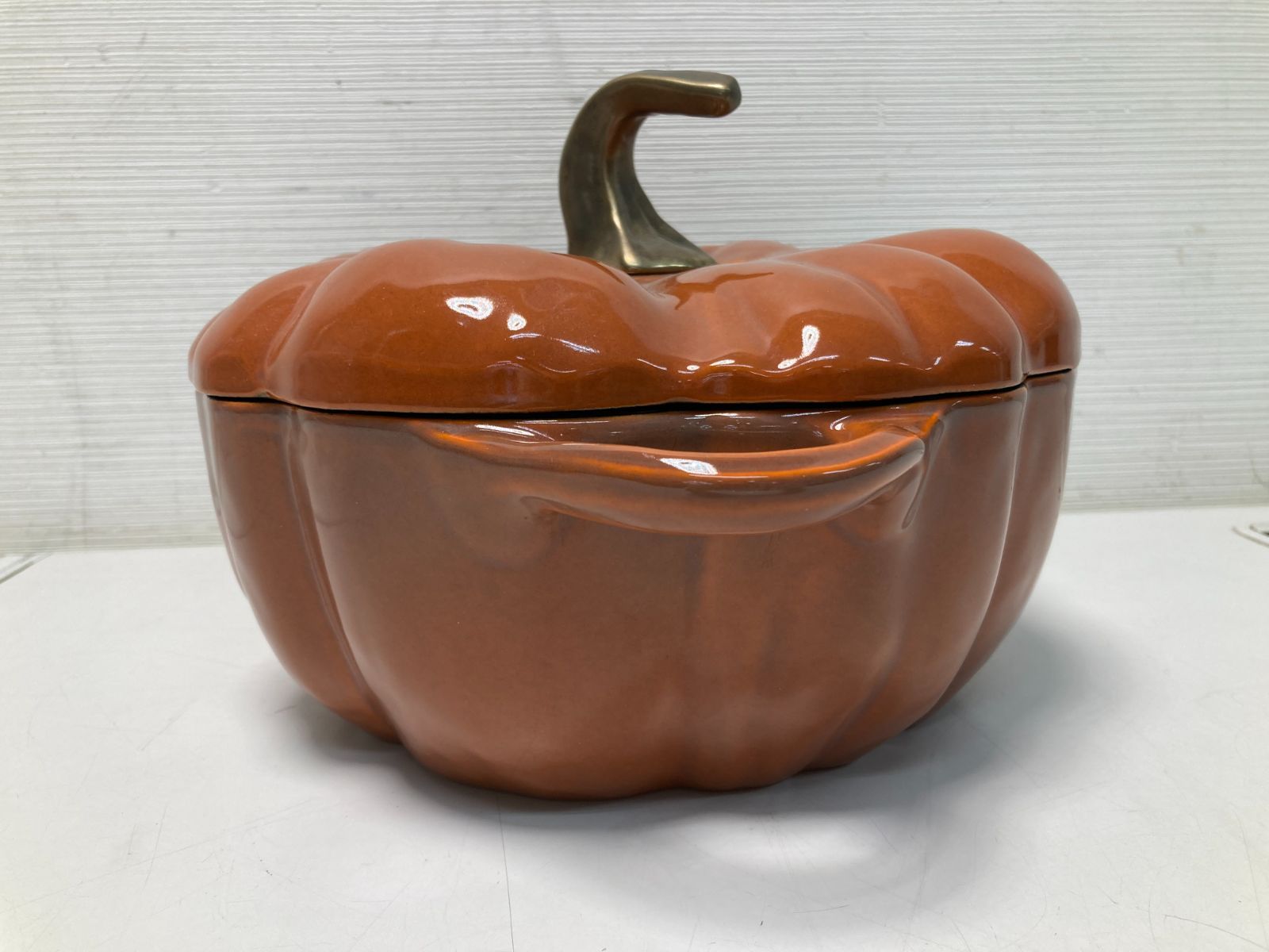 カボチャの形をした、ユニークでとってもキュートなココットです。