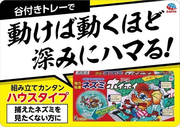 ●捕まえたネズミを見ずに、誤って踏みつけても粘着剤が直接体に触れることが無く、粘着剤にホコリや水が付くのを防ぎます。耐水加工なので、台所や風呂場といった湿気のある場所でも型くずれしません。