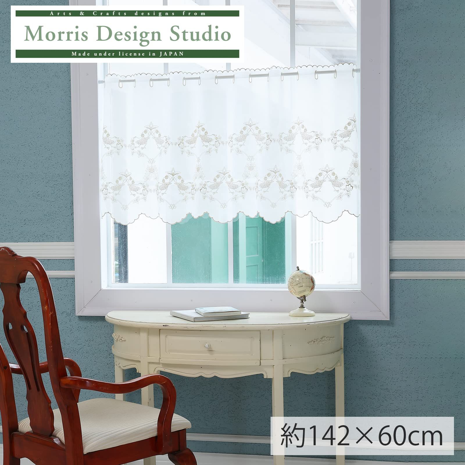 川島織物セルコン Morris Design studio モリスデザインスタジオ カフェカーテン イチゴドロボウ ベージュ 142×60cm DW1702 洗える クラシック