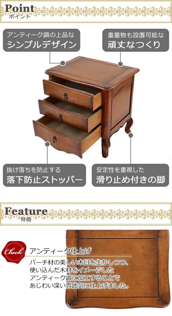 アンティーク調 3段 チェスト サイドテーブル 約W 65 約D 49 5 約H cm クラシック調 レトロ調 木製 花台 ナイトテーブル サイドチェスト キャビネット タンス 完成品 三段 猫脚 おしゃれ c antique f 31 選択 ブラウン