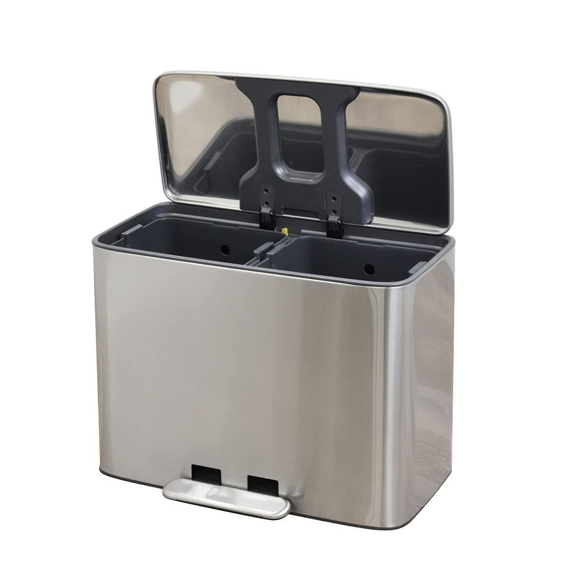 指紋がつきにくく、マット仕上げの中容器付きのステンレスダストボックス。シンプルなペダル式のゴミ箱です。2分別なので、キッチンにもおすすめです。