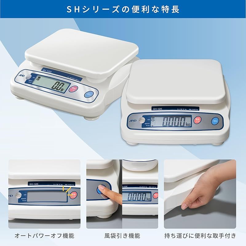 エー アンド デイ A D デジタルはかり SH 12 KN ≪ひょう量 kg 最小表示 0 005 皿寸法 230 W 190 mm 検定無≫ 計量法準拠製品