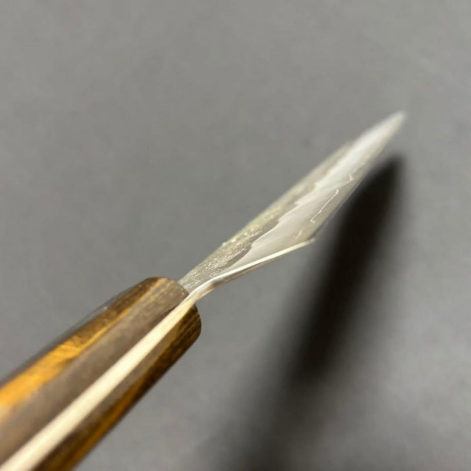 (HRC): 59~61仕上げ/Blade Finish: 梨地/Nashiji刃の形状 / Blade Grind and Edge Shape : 両刃 /