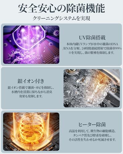 【湿度設定&冷&温3階段ミスト&リモコン付き】単なる加湿だけでなく、お部屋の乾燥状態に応じてお好みの湿度を設定可能。設定した湿度に達すると噴霧が自動停止するので、過加湿による結露やカビの発生を防ぎ、快適で健康的な室内環境を保てます。タッチパネルは軽く触れるだけで電源のオン/オフや運転モードの切り替えが可能。付属のリモコンを使えば、ソファやベッドに寝たままでも遠隔操作ができ、より便利にご利用いただけます。ヒーターを搭載した超音波式と加熱式の二つの良い所を取り入れているハイブリッド式加湿器です。超音波で水を気化させてヒーターで水を加熱します。加熱後の水は超音波に合わせて振動により水分を霧状になり、加湿効率が高まります。水をより清潔にし、もっと衛生的な環境を作ります。