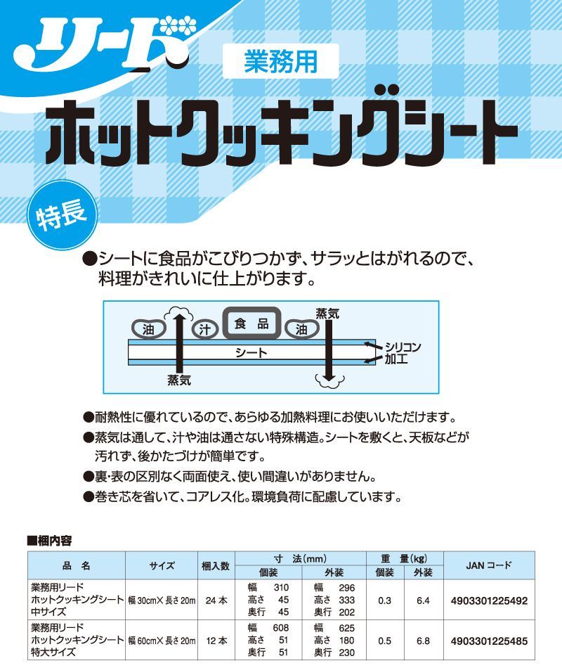 ライオン リード ホットクッキングシート 特大 60 cm 20 m 12 1ケース 業務用 大容量 調理 調理用シート オーブン スチコン 蒸し料理 電子レンジ 煮込み お菓子 パン 加熱料理 LION ライオンハイジーン
