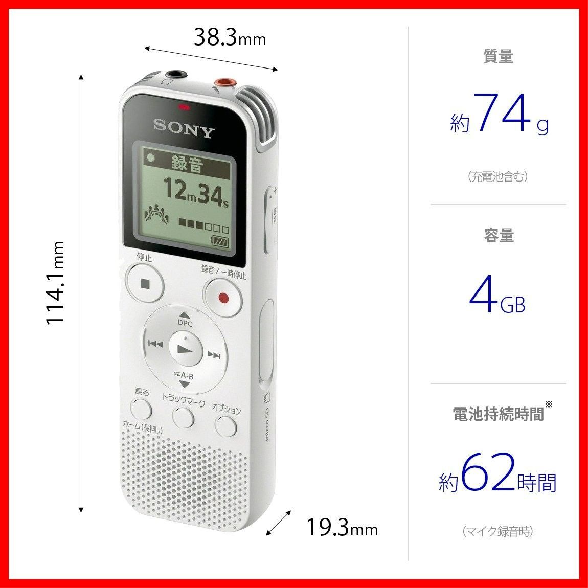 4 GB ICレコーダー リニアPCM録音対応 FMラジオチューナー内蔵 usb ソニー ホワイト ICD PX 470 F W