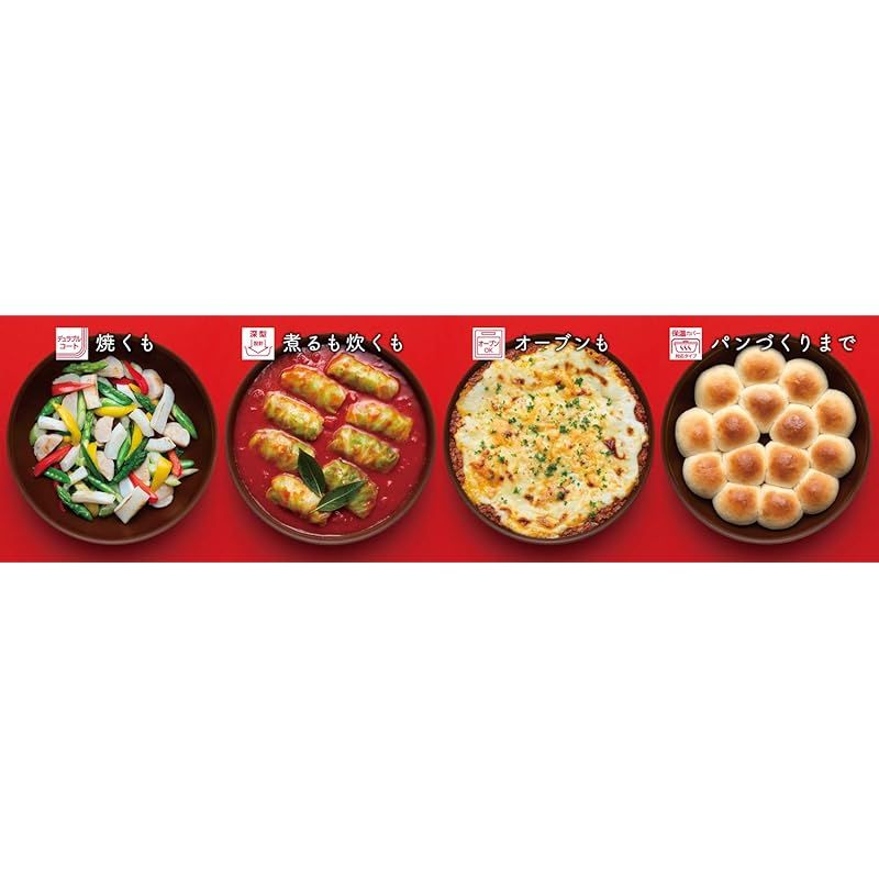 素材・材質2:【専用取っ手】フェノール樹脂・ナイロン、【専用フタ】本体/アルミニウム合金 (ふっ素樹脂塗膜加工)、ガラス窓/強化ガラス、【フライパン保温カバー】(外生地)ポリエステル・(内生地)コットン、木製プレート/天然木・(表面塗装の種類)ポリエステル樹脂塗装