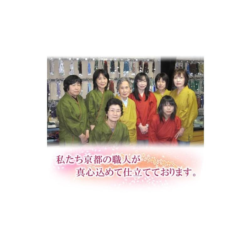 中糸には伸縮性があり丈夫なオペロンゴム(シリコンゴム)を使用しております。京都の数珠職人が匠の技で仕立てた逸品でございます。