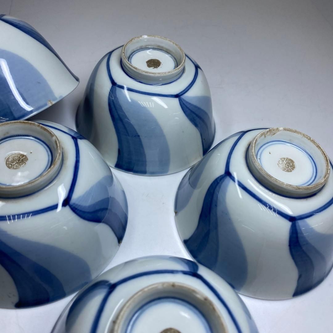 永楽善五郎 染付 捻り画 蓋茶碗 5点 直径11㎝ タエオ 東な7 0125