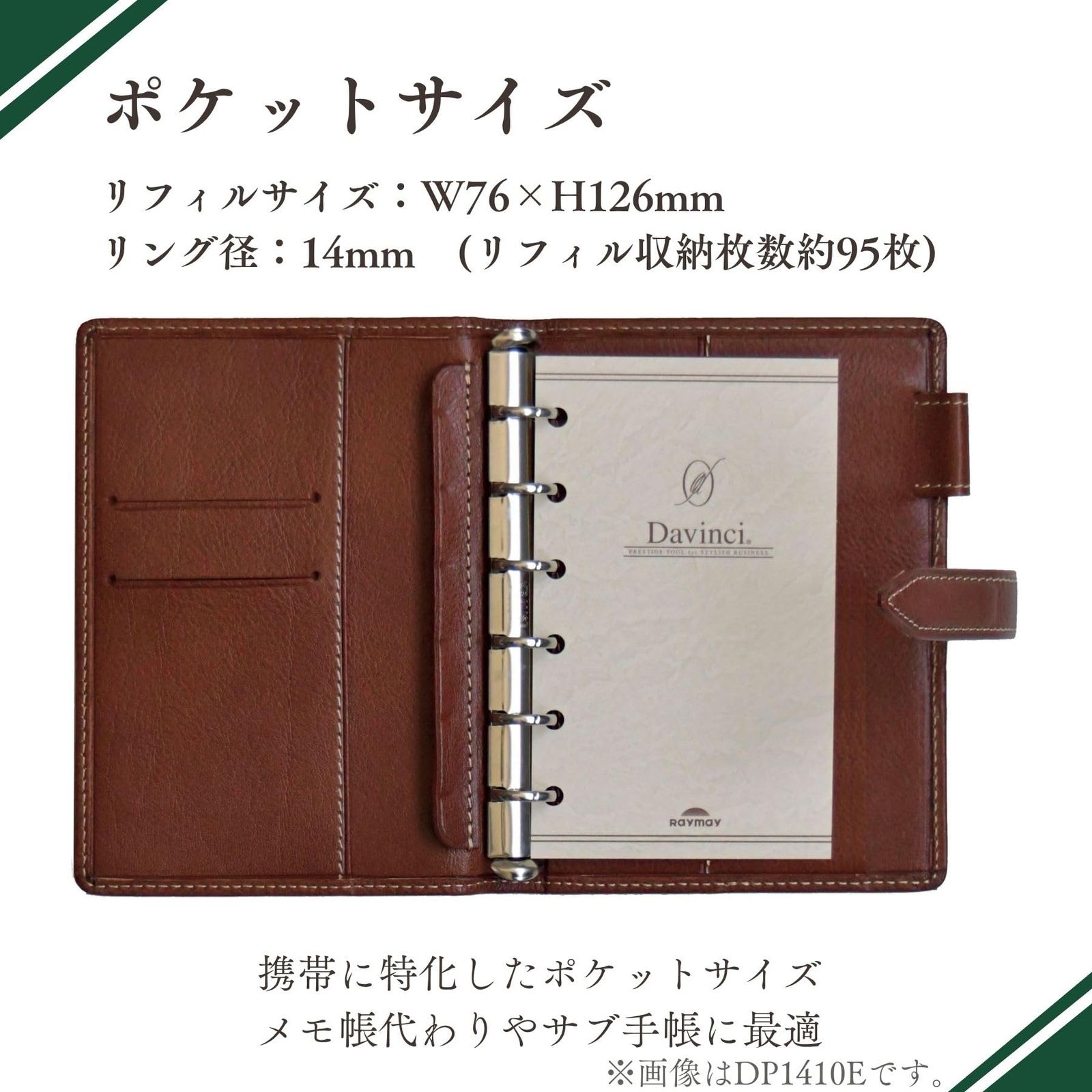 【ポケットサイズ】・リフィルサイズ:W76×H126mm・リング径:14mm(リフィル収納枚数:約95枚)携帯に特化したポケットサイズ。メモ帳代わりやサブ手帳に最適