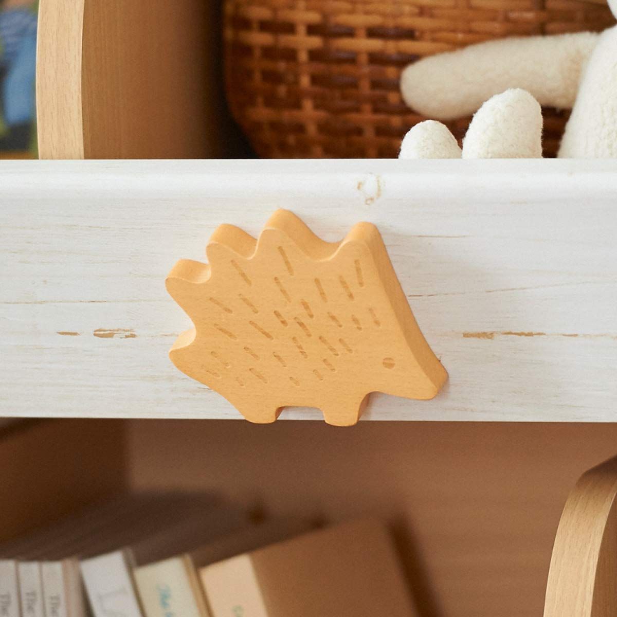 北欧雑貨を思わせる木製のハリネズミとゾウの飾りがポイントです。