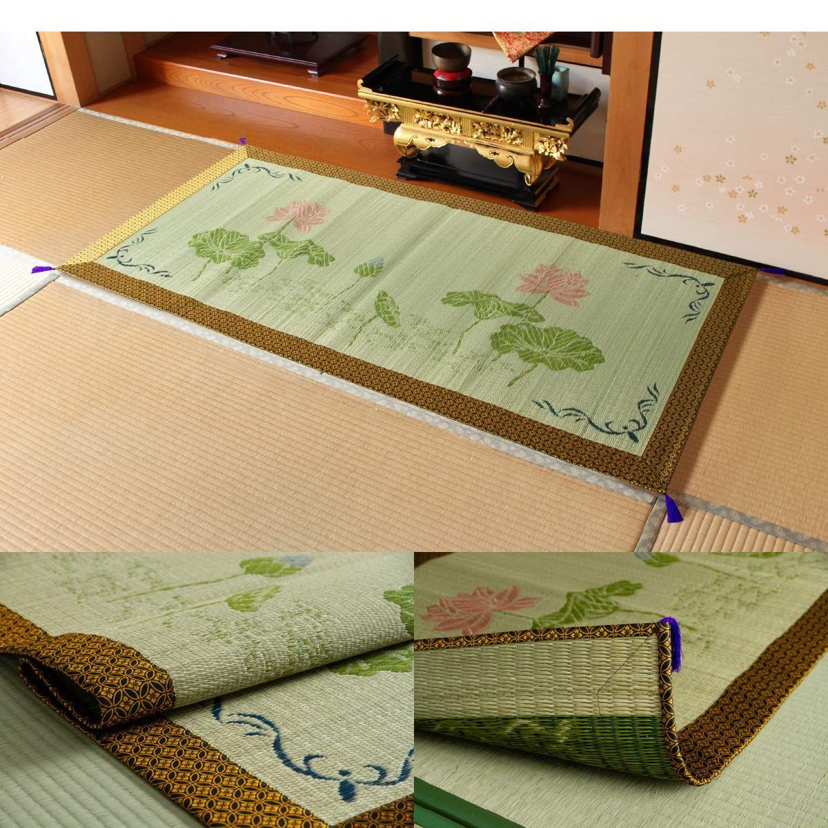 イケヒコ い草 御前 仏前 ござ 国産 袋織 蓮の花 約88×180cm #3109769