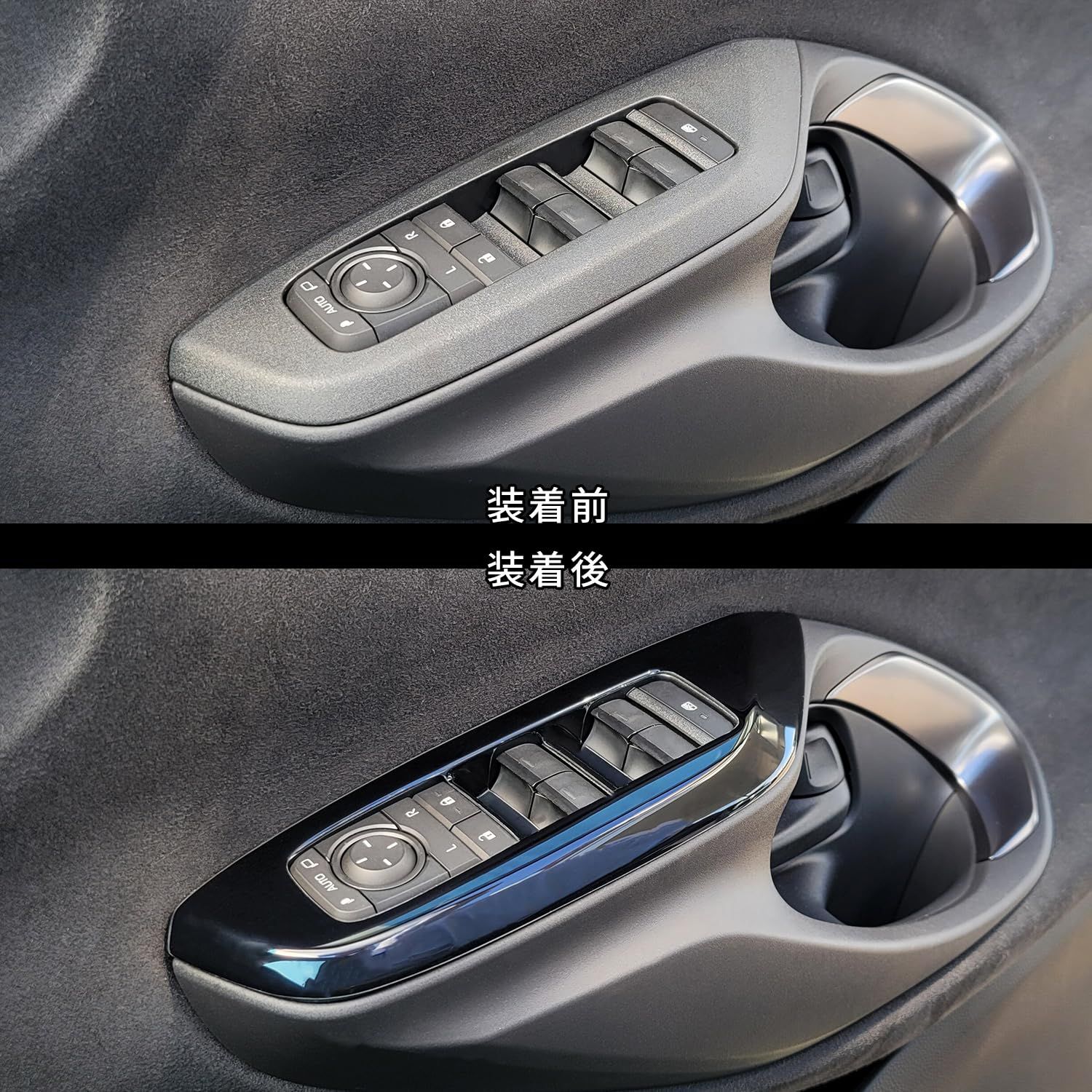 PWSW(ドアスイッチ)パネル 4パーツ。 ※フロント/リア(運転席・助手席側)※スイッチ下(落し込み部分)については、製法上の関係で色が若干薄くなります。取付所要時間:20分-25分