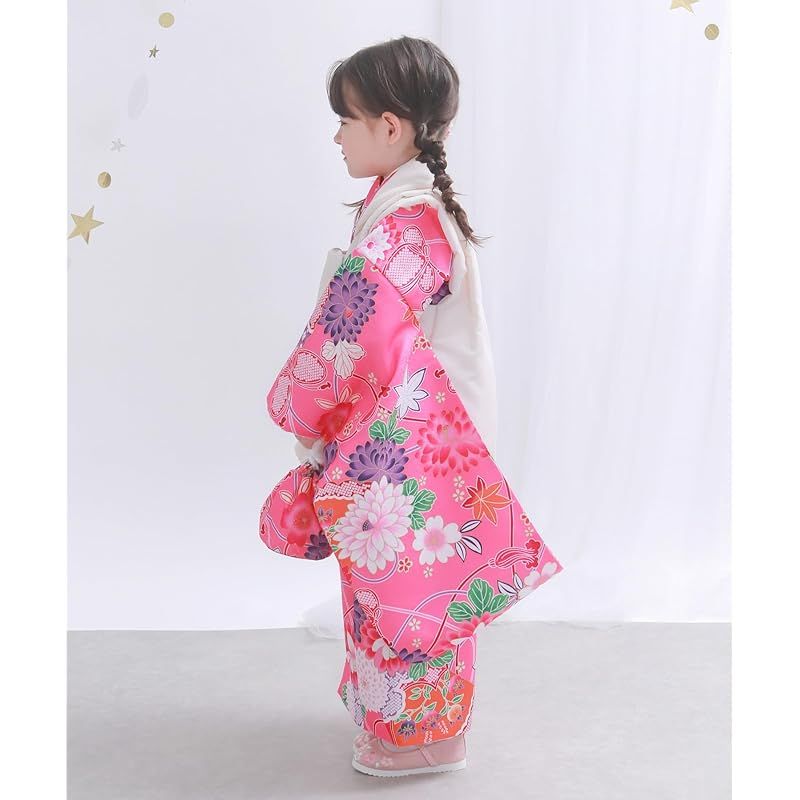 商品名:【新品】 [KYOETSU] [キョウエツ] 自宅で簡単着付け 七五三 3歳 女の子 着物 セパレート 二部式 セット 被布 小物 フルセット 753 4点セット (5.夢見桃紫花, 90-100cm)