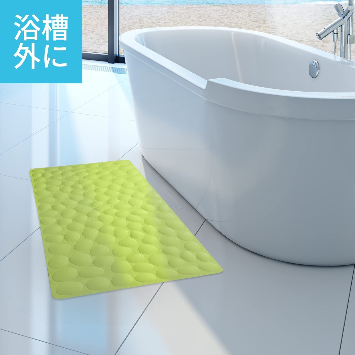 天然ゴム製 お風呂マット ストーン柄 介護 40 80 cm 転倒防止 浴槽 吸盤付き すべり止めマット 柔らかい お風呂 グリーン IRETION