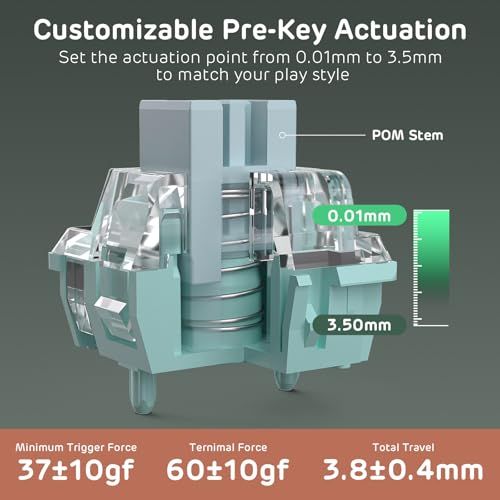 ホール効果マグネットスイッチと調整可能なアクチュエーション ? RK C98ホール効果キーボードで、超高速のレスポンス、正確なコントロール、そしてスムーズなキーストロークを体験してください。RKが独自に開発したマグネットスイッチは、比類のない0.01mmの感度を実現し、アクチュエーションポイントは0.01mmから3.5mmまで調整可能です。各キーをニーズに合わせて精密にカスタマイズすることで、FPSの競技シーンでは超高速のトリガー、タイピングでは意図的なキー入力をお楽しみいただけます。