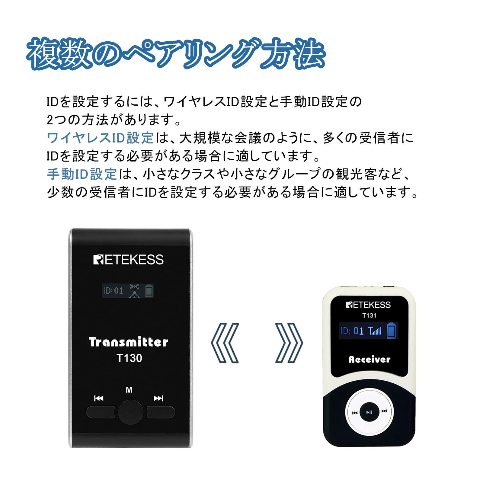 AUX機能 99チャンネル 電波法適合 PLL技術 無線ガイドシステム 工場見学 無線ツアーガイドシステム 旅行 1 送信機 10 受信機 観光 ワイヤレスガイドシステム 会議 T 130 博物館 Retekess 工事現場