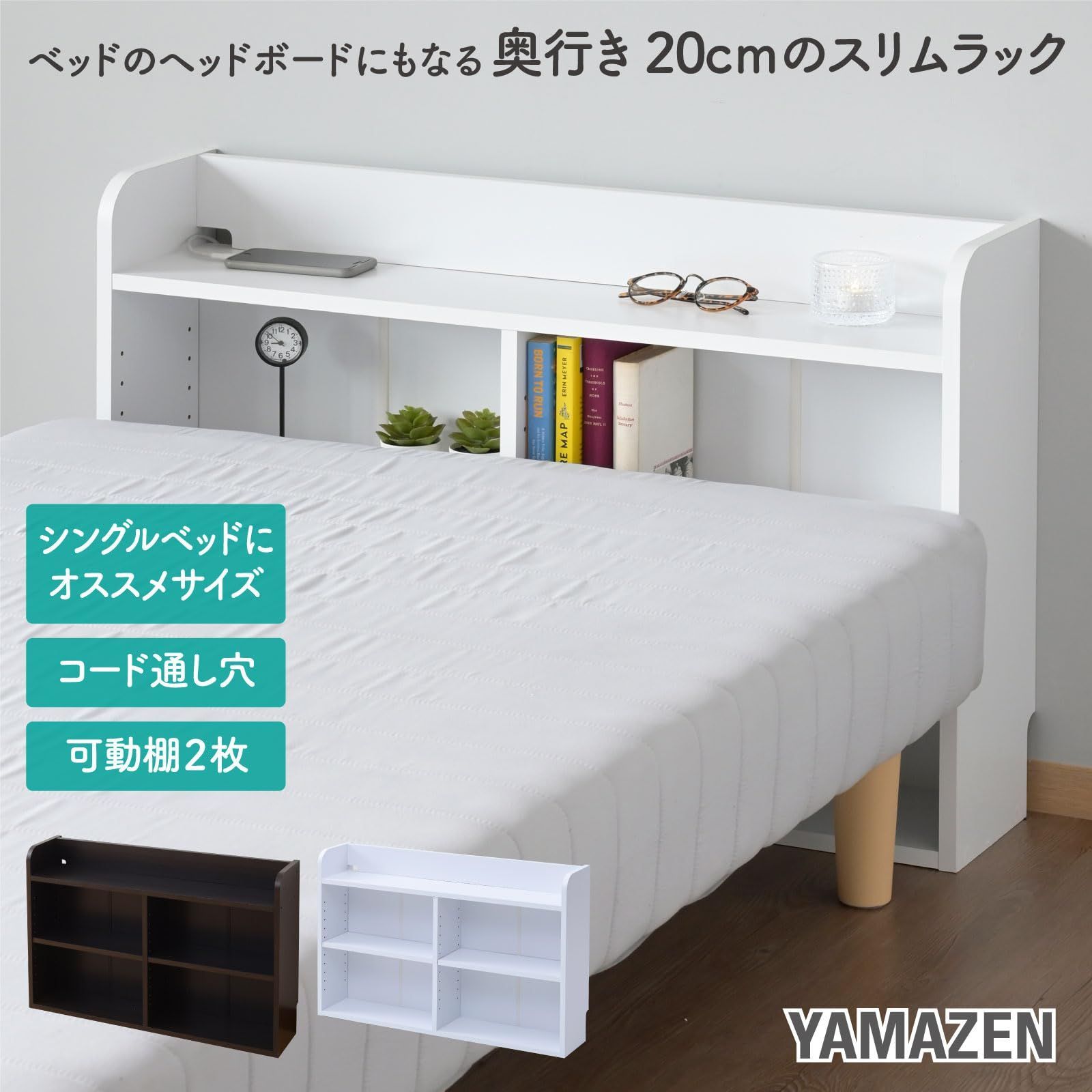●ベッドのヘッドボードにもなる奥行き20cmのスリムラック