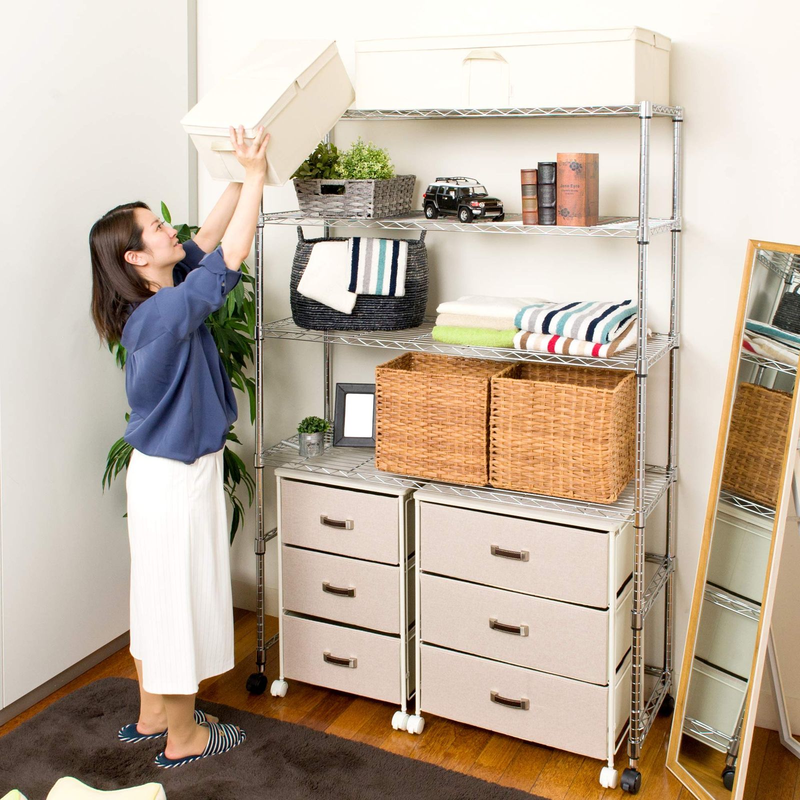 「ルミナススチールワイヤーラックシリーズ」「ドウシシャ製スチールラック」は 他メーカーのラック(メタルラック・メタルシェルフ等)には互換性はございません。