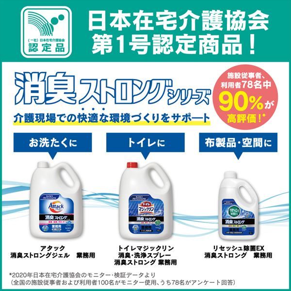 手ごわい尿臭や便臭もすっきり消臭。尿臭ブロッカーEX配合で、菌がつくる分解酵素の働きを抑制し、尿臭の発生を防ぎます。便の付着や黄ばみ・黒ズミの発生も防ぎます。便器・便座はもちろん、手洗い場や床の洗浄・除菌*・消臭ができます。尿臭にお困りの病院・介護施設や、公衆トイレにおすすめです。*すべての菌を除菌するわけではありません。