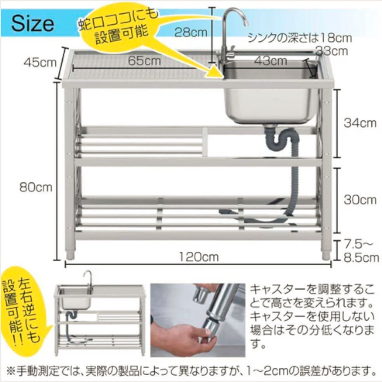972 ステンレス製 流し台 2段 作業台付き 約幅120 奥行45 高さ80 cm ステンレス製で丈夫で長持ち 必要な が全てセット A 120 一部地域 別途配送料有