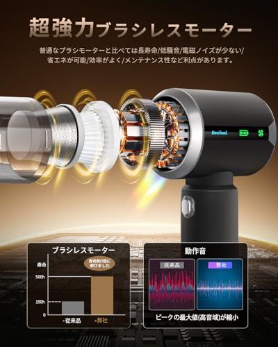 【ブラシレスモーター!低騒音!ワンプッシュ!】車用掃除機は先端なブラシレスモーターを採用し、従来型のモーターより負荷が変化しても安定した速度制御が行えます!床面の微細なホコリからペットの毛、隙間に潜むホコリも、この車用掃除機で逃しません、一往復で残りなし!超強力な吸引力と低騒音を両立させており、騒音最適化エンジニアリングにより、掃除機動作中の音が大幅軽減。ハンディクリーナーのスイッチはワンプッシュで連続稼働する構造ですので指に負担がかかりません、非常に便利!