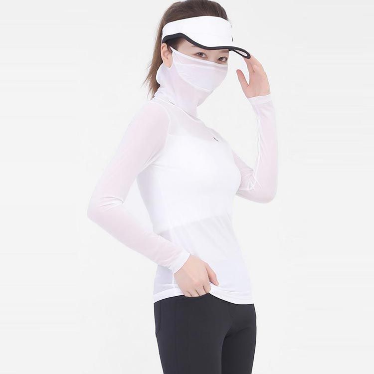接触冷感 夏 マスク付き ひんやり テニスウェア UVカット ゴルフウェア 長袖ゴルフシャツ 登山 ストレッチ インナー インナーシャツ 通気 速乾 女性用Tシャツ 運動着 日焼対策 sowa 6586552
