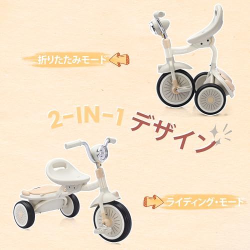 【耐用性&便利性】三輪車の後ろに収納枠があります。必要な物を収納することができます。折り畳んで簡単に運べます。車体には強度高い高炭素鋼を使用しており、安定した構造と強い耐荷重を実現しています。