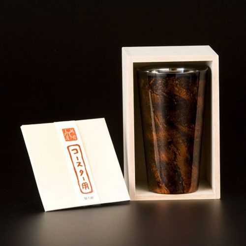 燕三条の研磨技術で仕上げたステンレスのボディに伝統工芸・山中漆器の漆塗りを施したカップです。