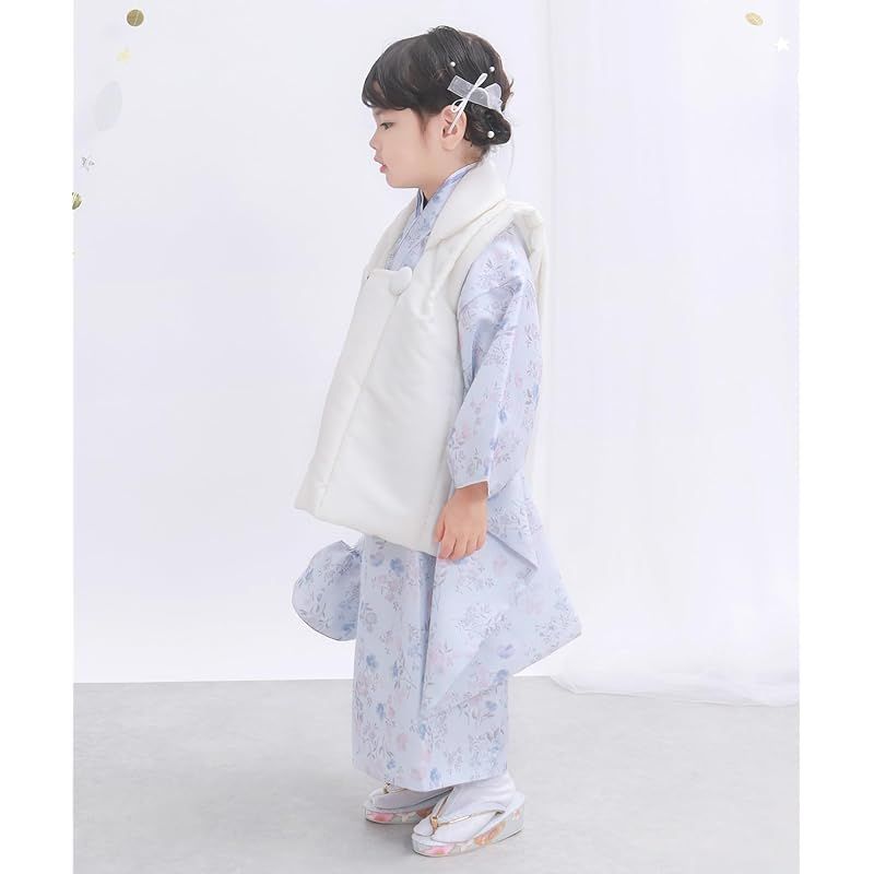 KYOETSU キョウエツ 自宅で簡単着付け 七五三 3歳 女の子 着物 セパレート 二部式 セット 被布 小物 フルセット 753 4点セット くすみ 8 蒼の花夢 90 100 cm 1
