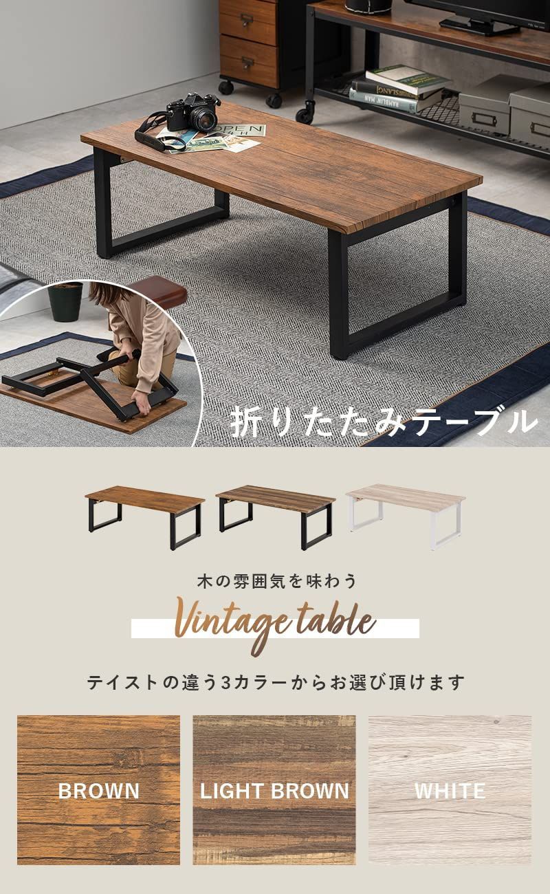 木目調天板 スチール脚 インダストリアル 机 リビング テーブル ソファテーブル 折りたたみ 幅90 センターテーブル ブラウン ローテーブル 頑丈 萩原 Hagihara LT 4396 BR