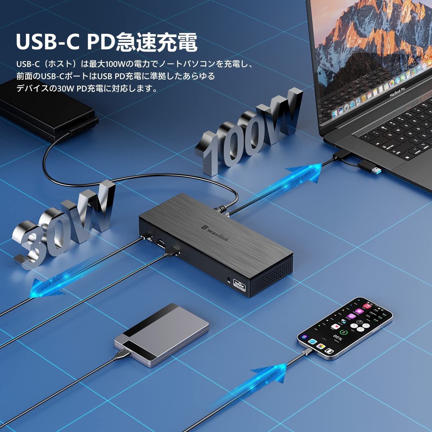 WAVLINK Type cドッキングステーション/クワッド4K/デュアル5Kディスプレイ/ 最大5K(5120x2880 @ 60Hz)出力/100W Power Delivery/4*DP出力ポート/4*HDMI出力ポート/ 2*USB-Cポート/USB‐A3.1/3*USB‐A3.0/LANポート/microSD&SDカードスロット/Windows 7/8/10/11/Mac OS に対応