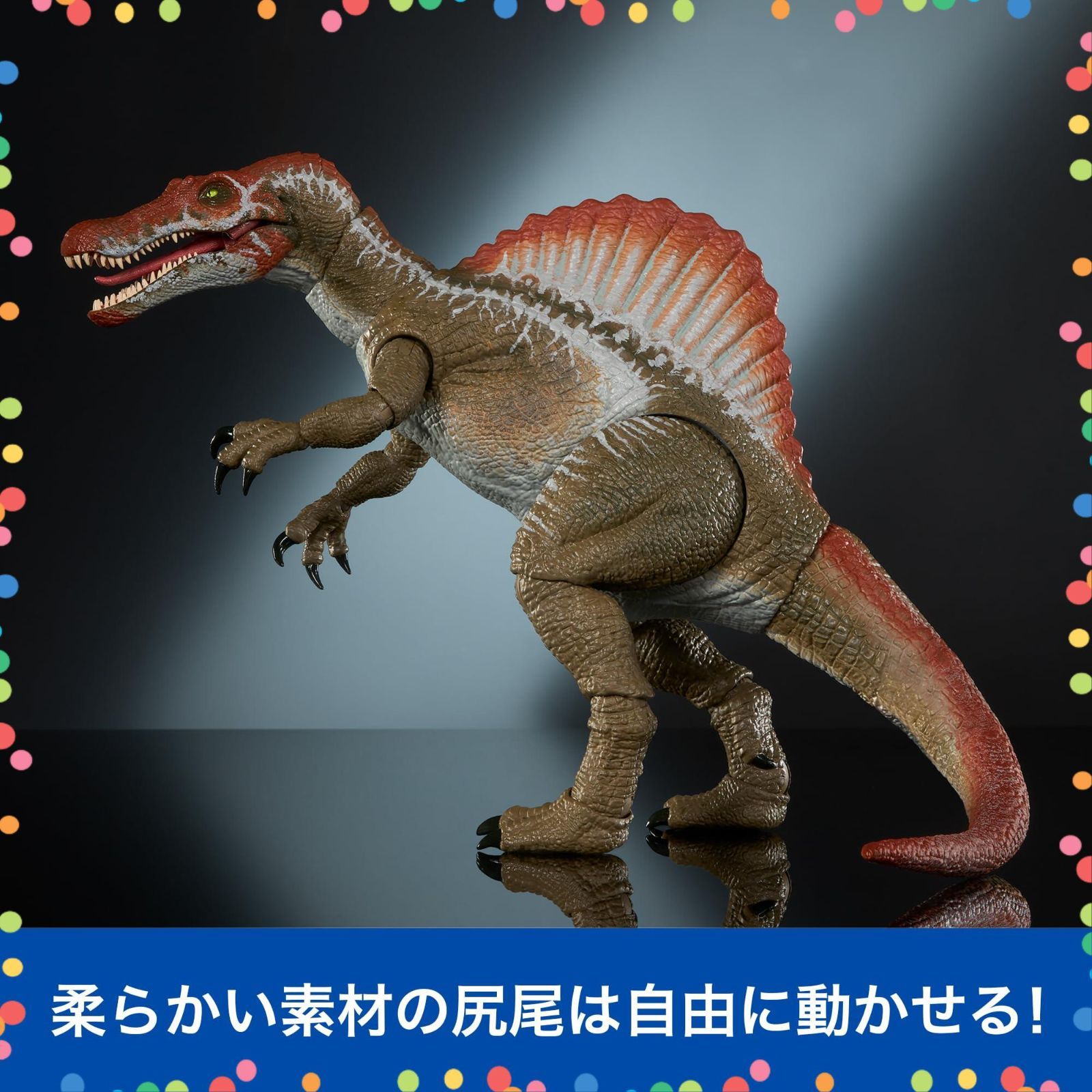 【内容】細部にこだわったコレクター向け商品のハモンドコレクションに、『ジュラシック・パークⅢ』からスピノサウルスが登場。目にはガラスを採用し、よりリアルな表情に。頭や脚、口など、体の14か所が可動します。尻尾は柔らかい素材を採用し、好きなように曲げることができます。ジュラシック・ワールド・シリーズのスリルと冒険を、ハモンド・コレクションでお楽しみください!
