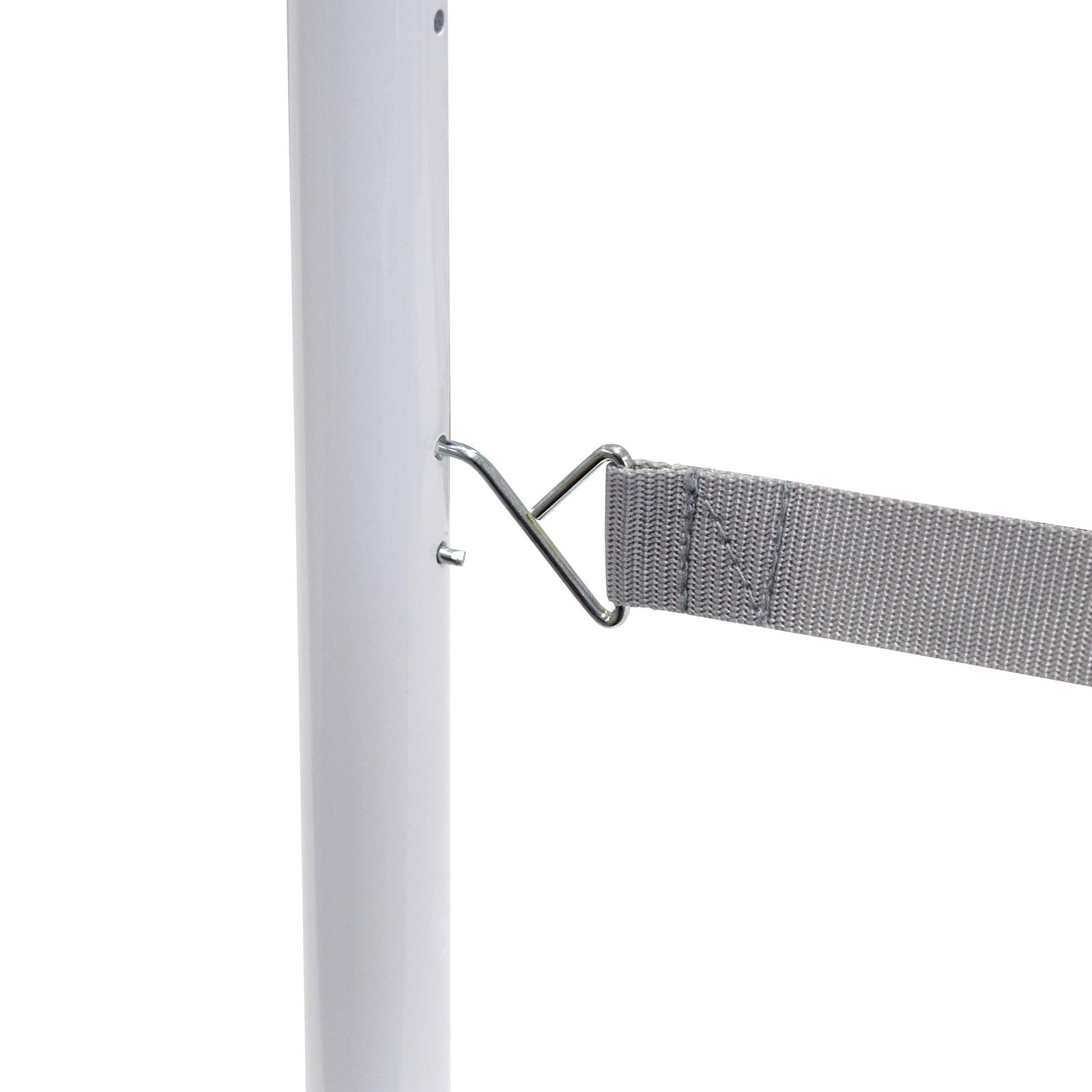 サイズ:支柱/70×90×300(φ27.2)mm、ベルト幅/25mm、ベルト厚/1.3mm、 素材:支柱金具/スチール(表面処理/焼付塗装)ベルト/ポリプロピレン粘着/VHB(アクリル系粘着剤)、 耐荷重:約100kg/1セット、 セット内容:支柱金具:4個フック付きベルト:3本