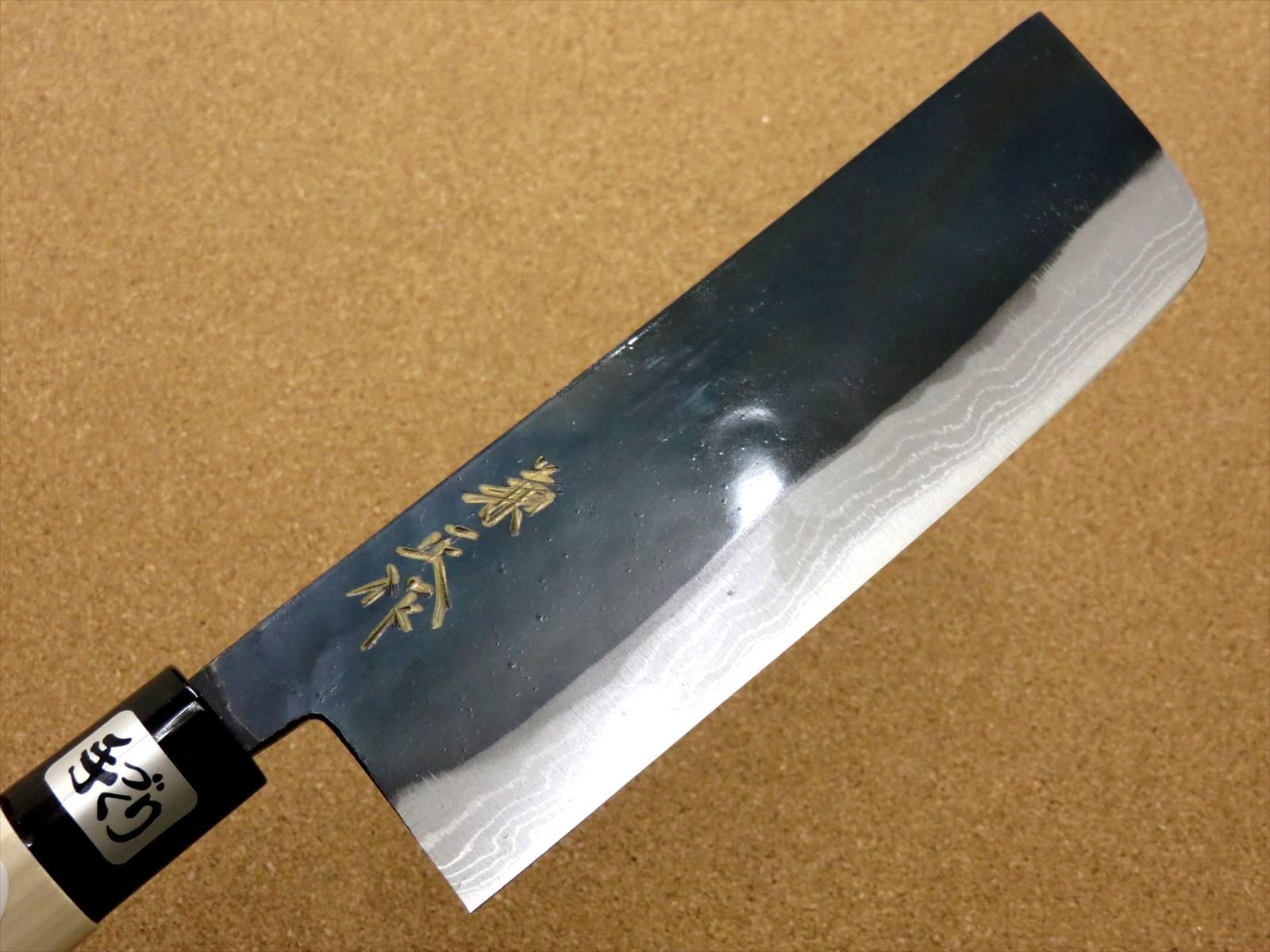 包丁 菜切包丁 16 5 cm 165 mm 金銘 兼正作 関の刃物 白鋼 2号 多層鋼 黒流し黒打 口金付き 両刃包丁 野菜切り 千切り かつらむき