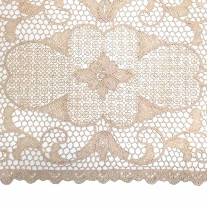 オールレースのお洒落なテーブルセンターです。普段のテーブルに敷くだけで、エレガントな雰囲気に変わります。少し暖かい色味のホワイトなので、和風テイストな空間にも合います。マットの上に花瓶やティーカップを置いて、お客様を招いてみたりちょっと贅沢な一時を過ごすのにピッタリです。1枚1枚、丹精込めて手作りされた、上品で美しいデザインが魅力です。手作りならではの個体差もお楽しみいただけます。